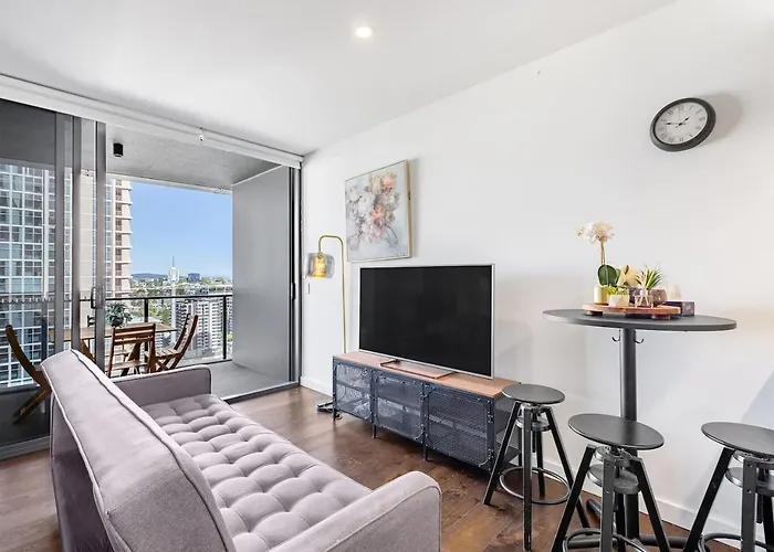 ブリスベンでの休暇を楽しむには、ヴィクトリア橋から歩いて20分くらいで、マウント クーサ ルックアウトから6kmの寝室1室のCentral South Bank City View Pool Free Parking ブリスベンアパートがあります。 75m²のアパートに滞在中は、プライベートなプールでくつろいだり、宿泊から500メートルくらい離れたゴー・ビトウイーン・ブリッジを訪れたりできます。